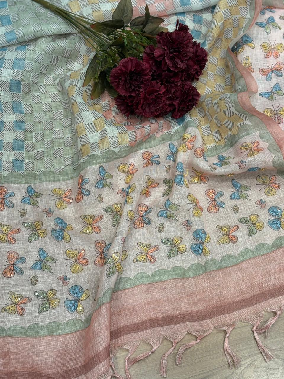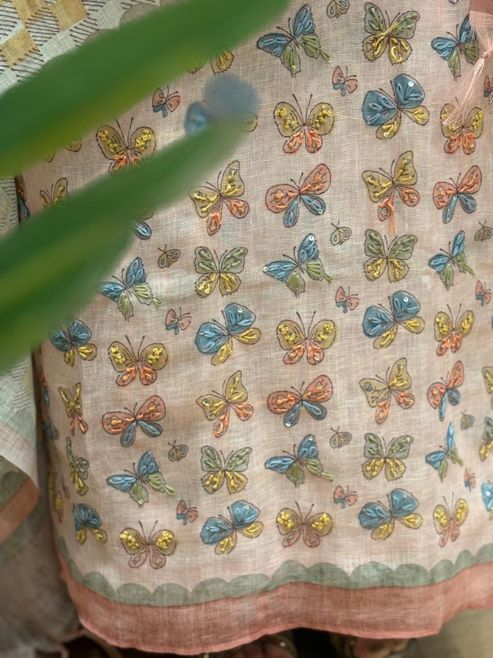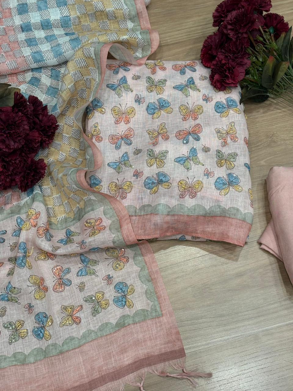 Effortless elegance with this pure linen cotton unstitched suit