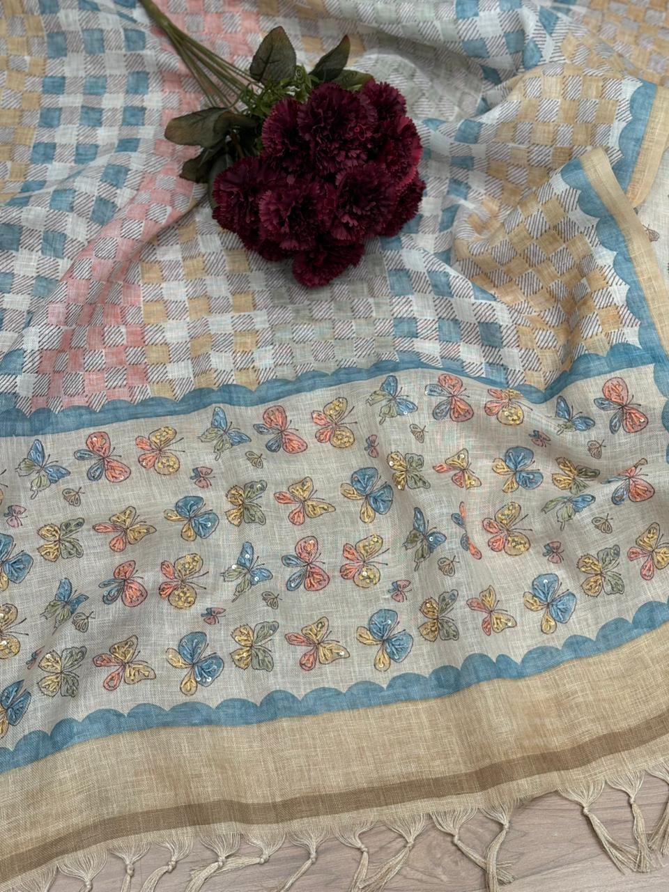 Effortless elegance with this pure linen cotton unstitched suit