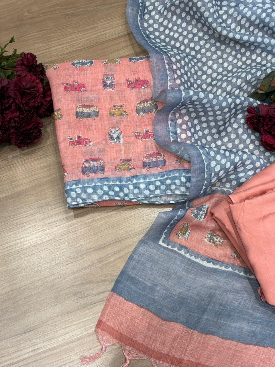 Introducing our elegant unstitched suit crafted in pure linen cotton fabric, designed for effortless comfort and timeless charm. The shirt features a beautiful playful print enhanced with subtle sequin detailing that adds a soft festive shimmer. The coordinated dupatta carries matching prints, creating a graceful and balanced look. Paired with a smooth santoon bottom, this ensemble ensures both style and ease throughout the day. Perfect for brunches, casual gatherings, office wear, or light festive moments. Available in four delightful shades – Candy Blush, Butter Scotch, Peach Blossom, and Lilac Marshmallow – each color adds its own unique, refreshing vibe. ✨