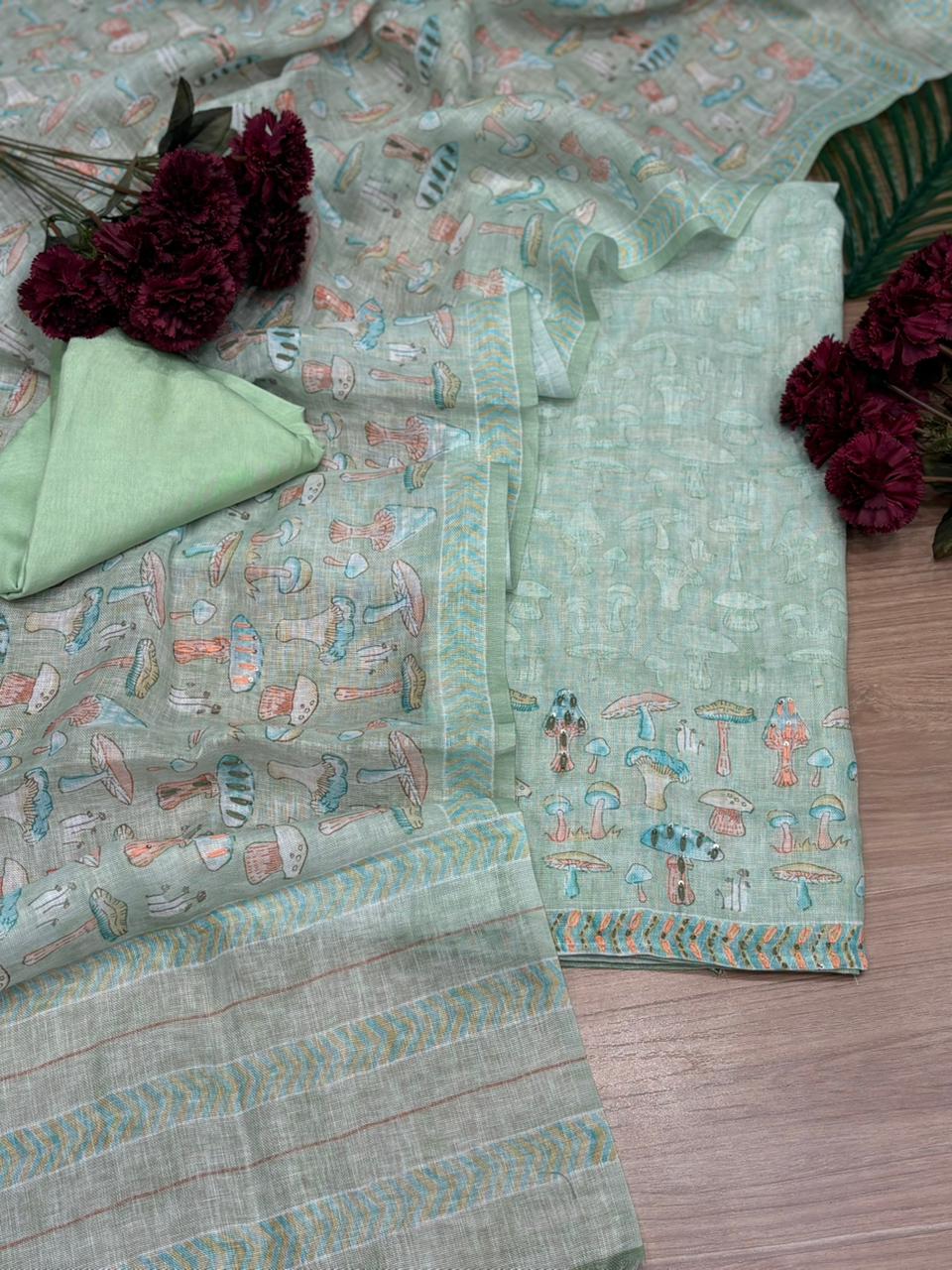 Elegant unstitched suit crafted in pure linen cotton fabric
