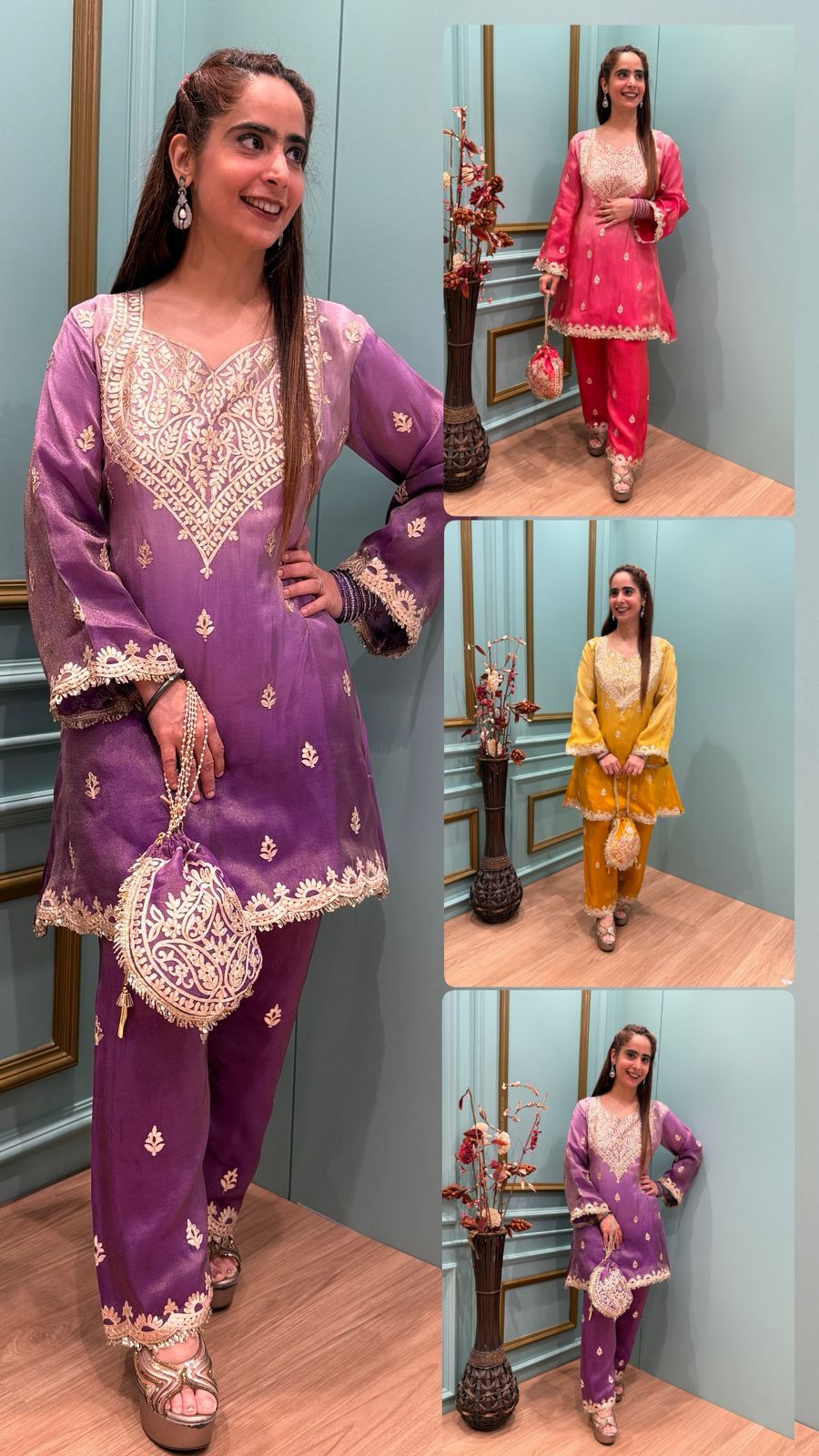 β¨ Elevate your festive charm with our luxurious tissue shimmer fabric cord set, adorned with intricate Kota Pati embroidery. Perfectly blending tradition with modern elegance, this outfit radiates grace and glamour. Style it with statement accessories and let your look shine bright at every celebration. πππ