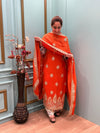 We have a breathtaking unstitched suit fabric in Organza Shimmer featuring exquisite gota work, katdana, sequence, and crystal hangings, crafted to perfection for festive elegance. The dupatta in Organza Shimmer with detailed finishing adds a regal charm, while the smooth opada silk bottom ensures comfort with richness. This masterpiece is designed for weddings, festive occasions, and timeless celebrations where you want to shine effortlessly. Available in three vibrant shades—Green for royal grace, Hot Pink for bold glamour, and Orange for festive radiance. Limited stock, endless compliments—grab this luxury ensemble now and redefine your festive look. ✨💫