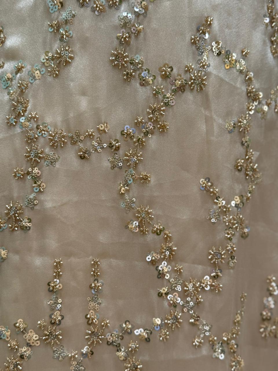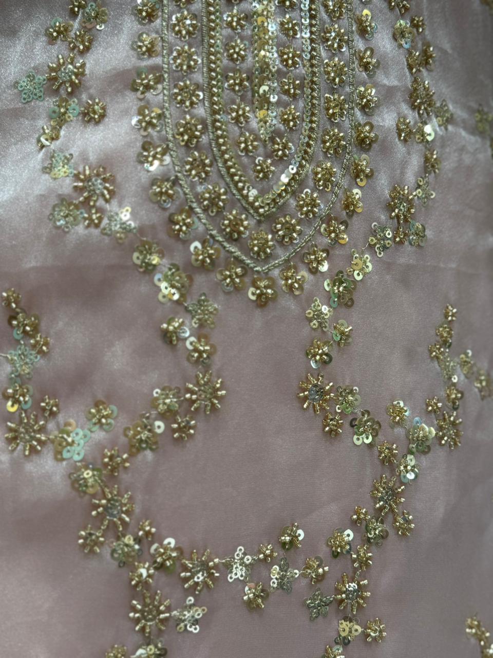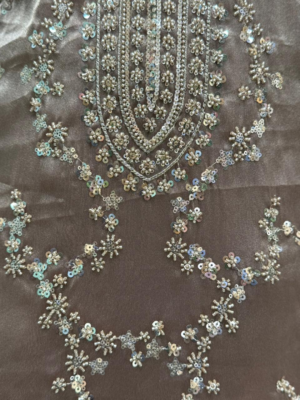 Namaste Sasriyakal πŸ’• presenting our luxurious unstitched suit crafted in shimmer organza fabric β€” a perfect blend of elegance and grace. The suit features all-over intricate katdana and sequin handwork, designed to add that subtle festive sparkle. Its organza dupatta comes with delicate embroidered motifs and fine border finishing, completing the look with sheer sophistication. Perfect pick for wedding functions, sagan ceremonies, or festive evenings, this outfit reflects timeless charm with a modern shine.
