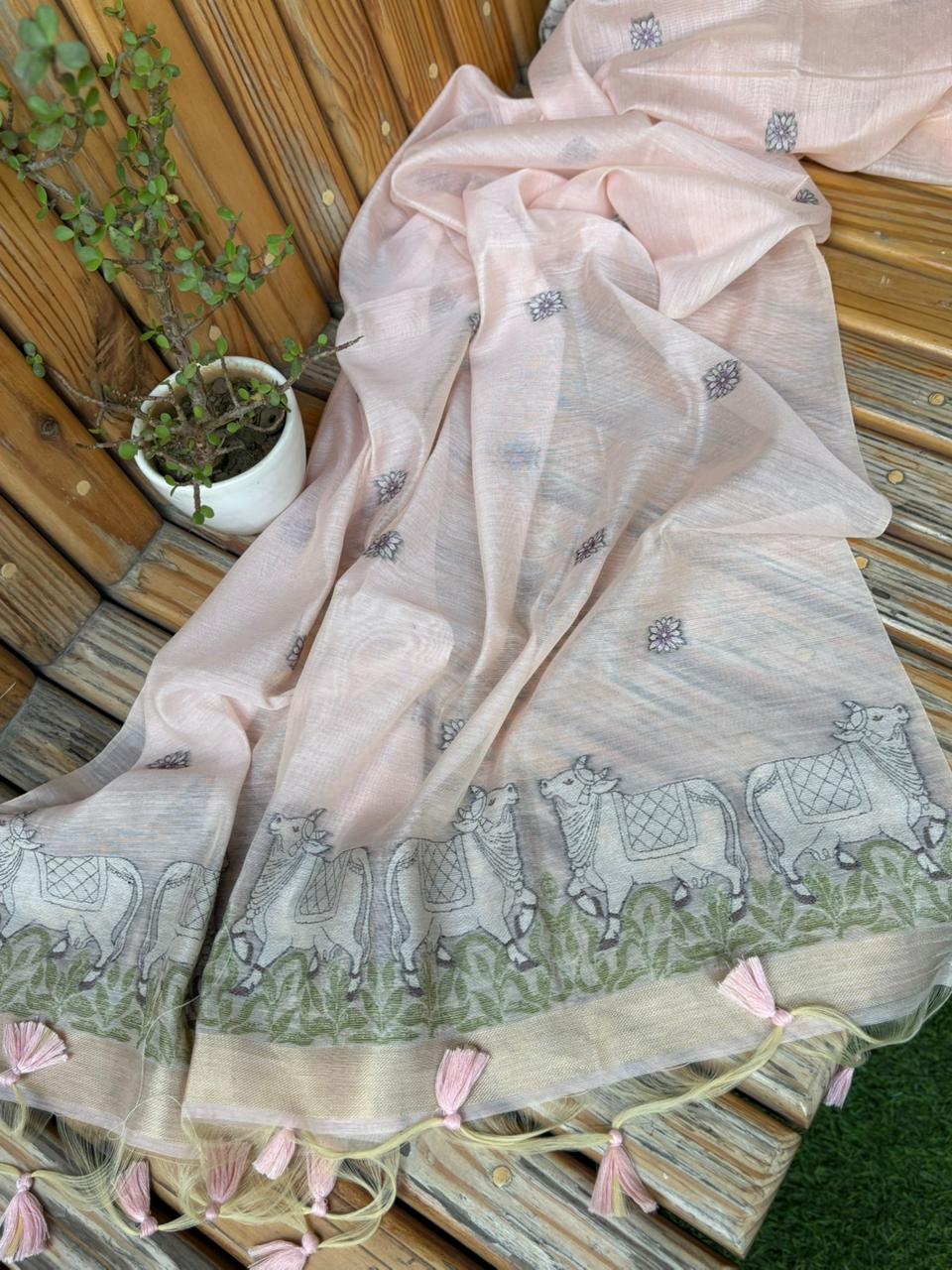 This beautiful unstitched suit set is crafted in premium Jamdani cotton fabric, known for its lightweight feel and elegant traditional texture. The shirt features delicate figure weaving that adds a graceful and artistic touch to the design. It is paired with a stunning Jamdani cotton dupatta, beautifully detailed with woven patterns that enhance the overall ethnic charm. The set also includes a comfortable matching bottom to complete the look. Perfect for summer gatherings, casual outings, and festive moments, this outfit blends tradition with effortless elegance. Available in three refreshing shades: Lemon Glow, Mint Sage Glow, and Soft Peach Glow.