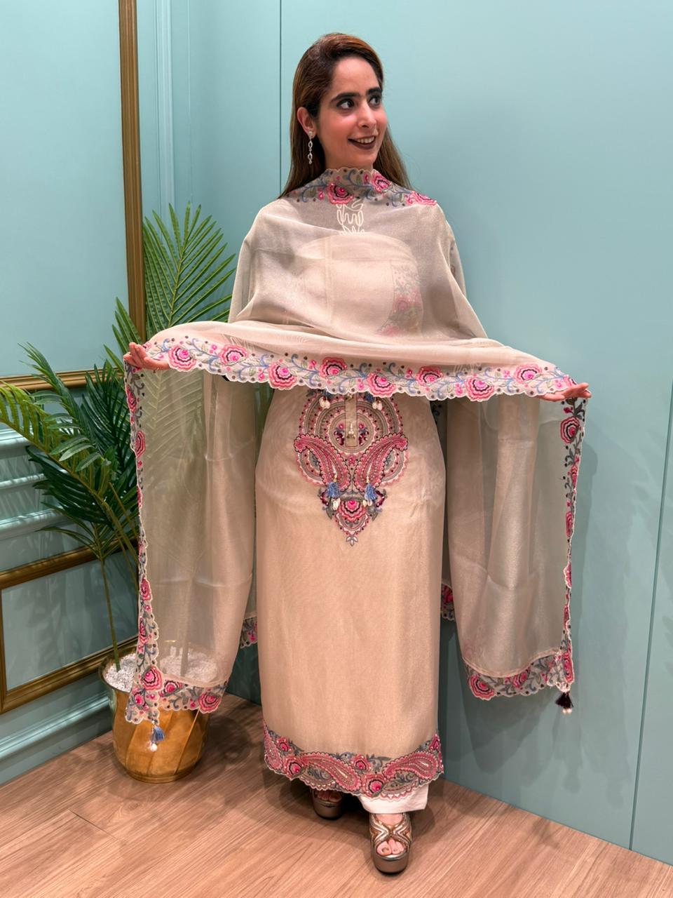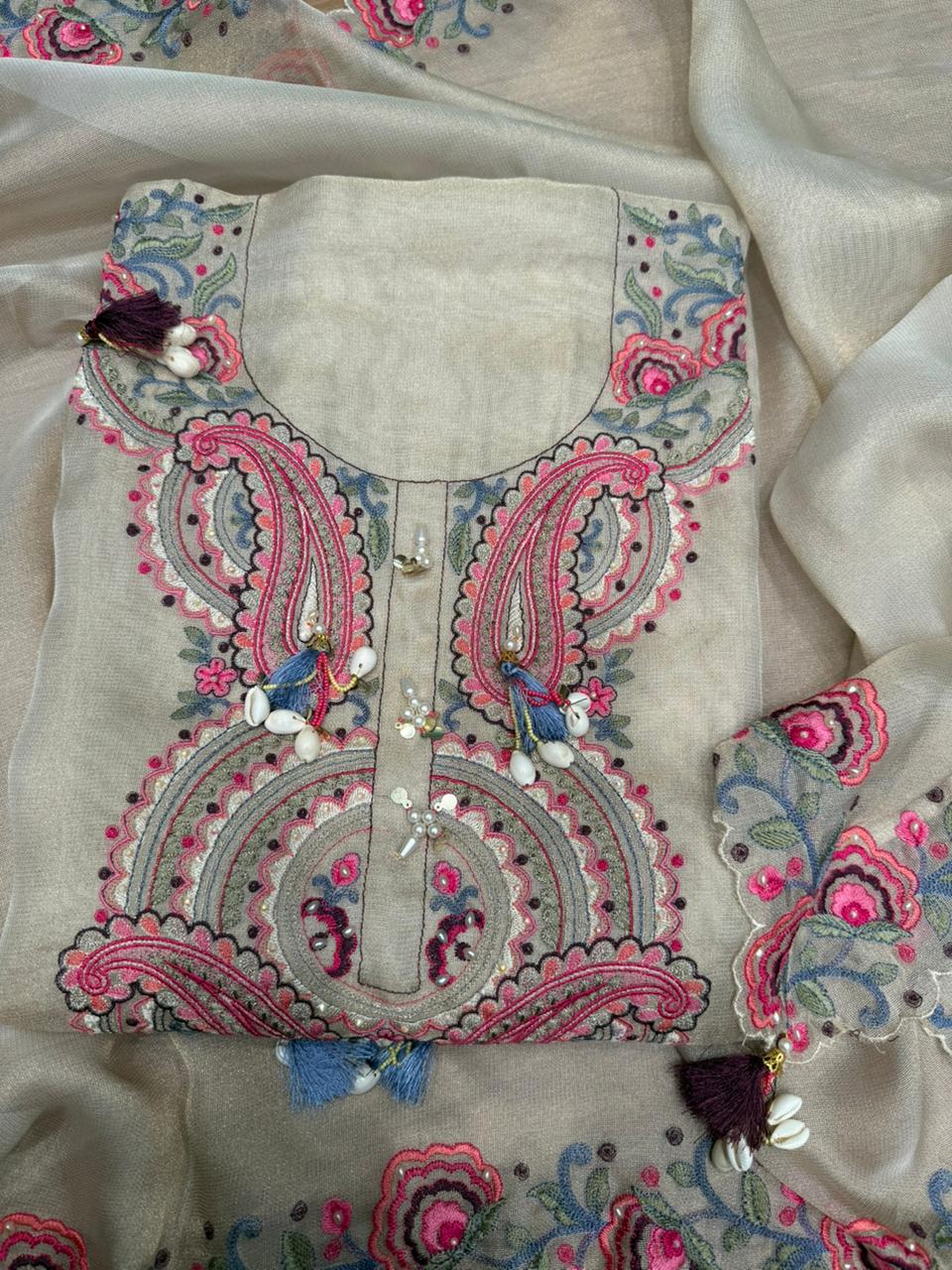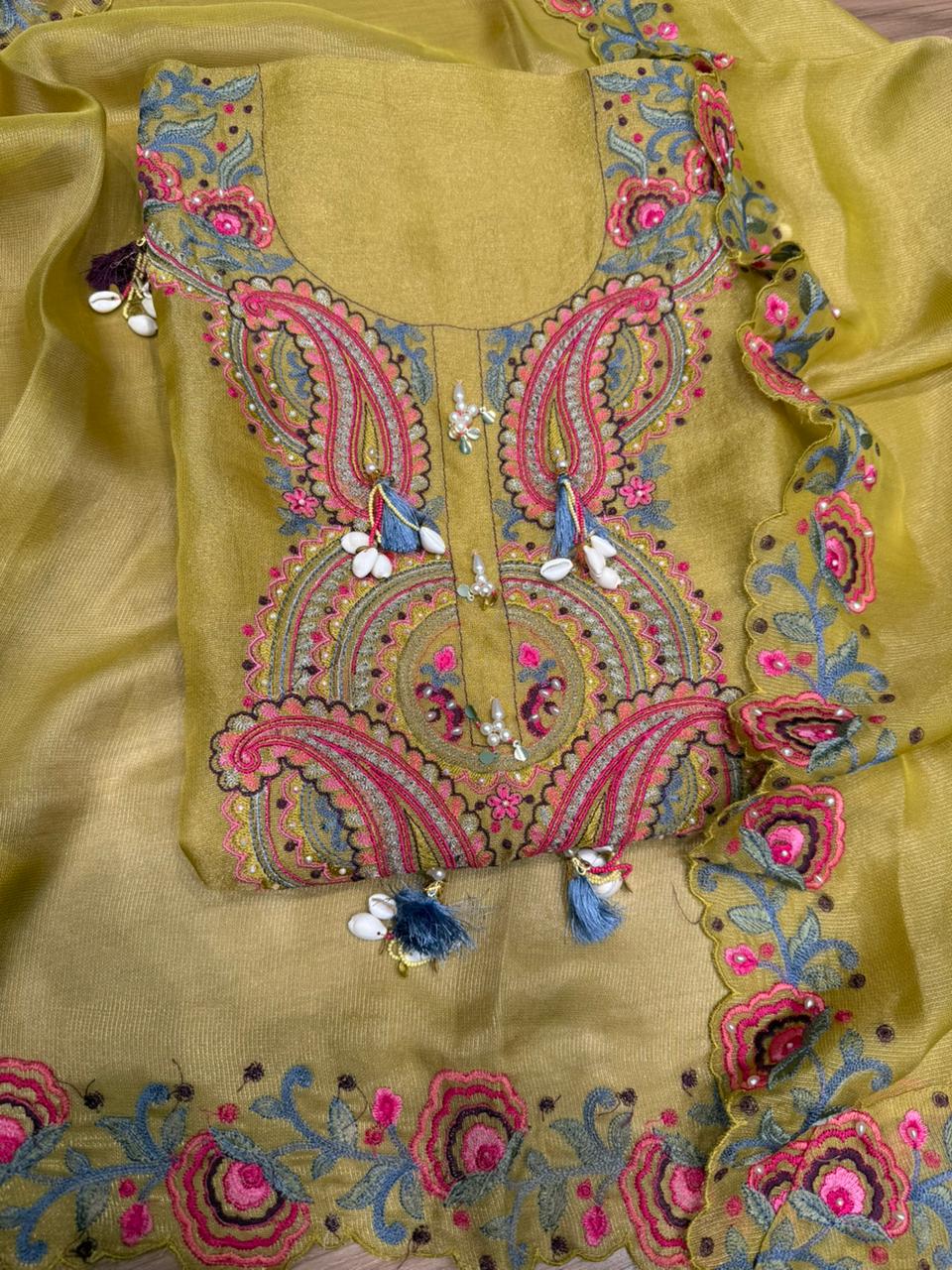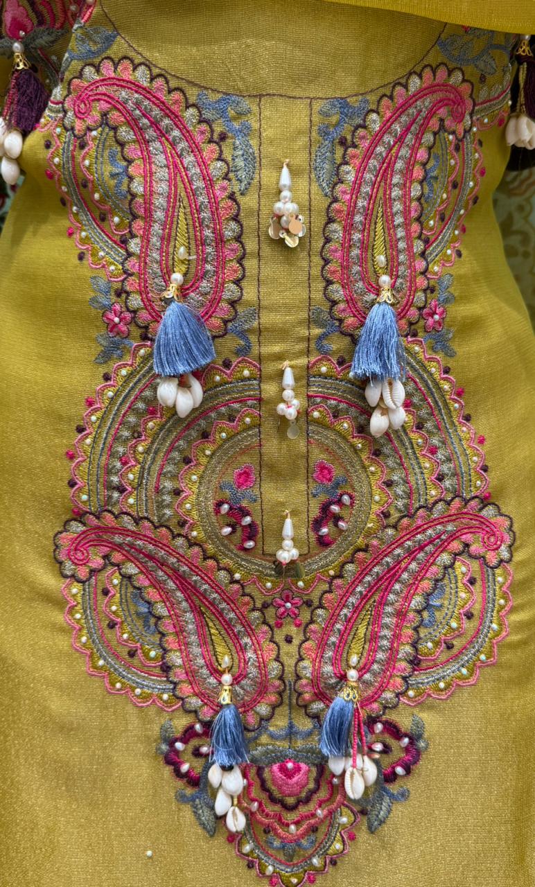 Introducing our luxurious Burberry shimmer unstitched suit, designed for women who love elegance with a modern festive touch. This premium fabric has a soft shine that feels rich yet lightweight, making it perfect for long functions and celebrations. The beautiful embroidery and detailed finishing add a royal charm to the entire look.