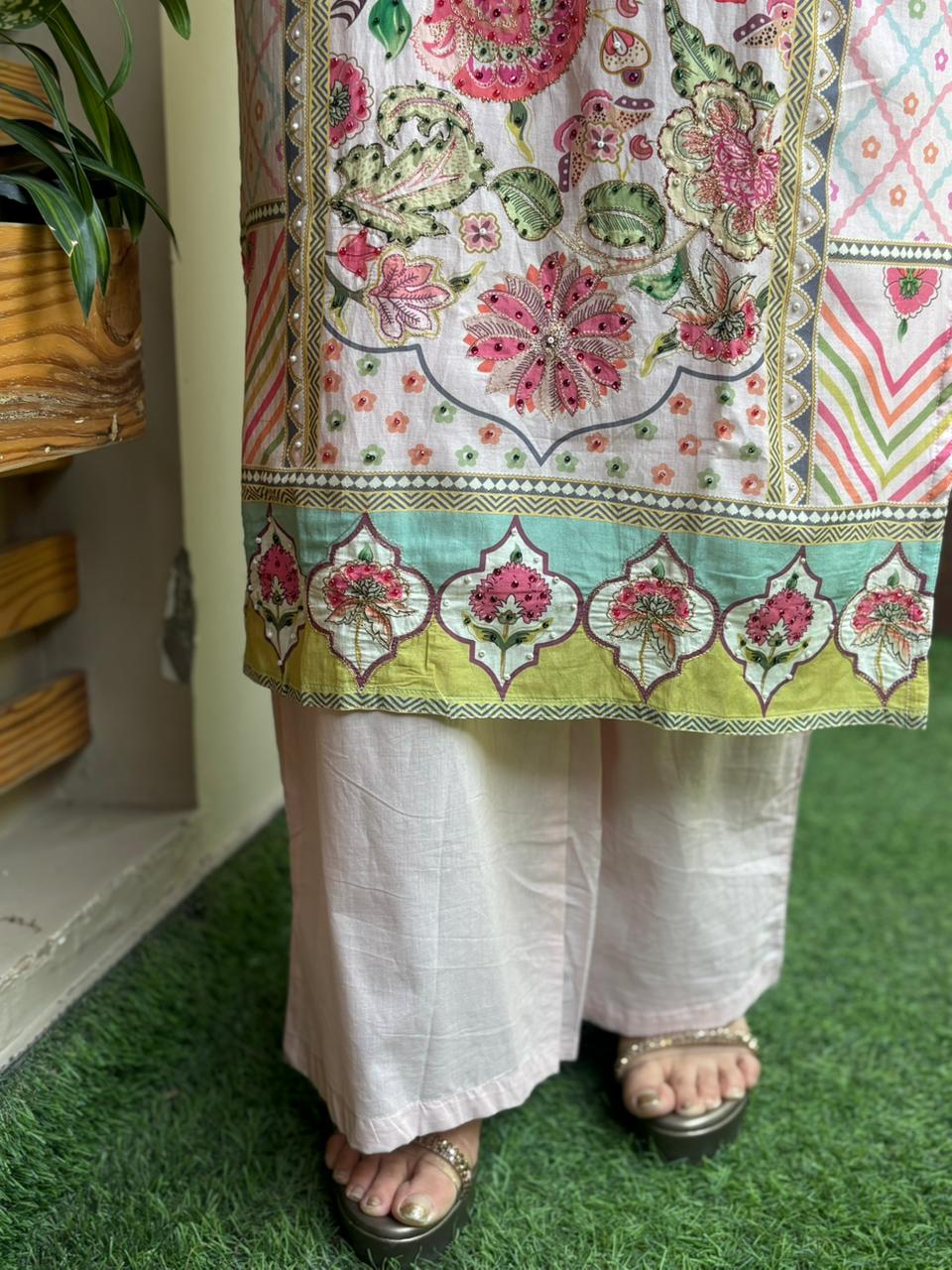 Elegant kurti set is crafted in soft muslin cotton fabric