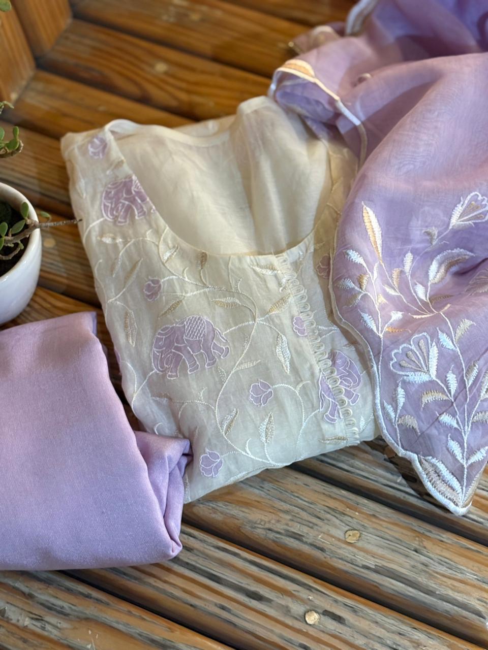 Experience effortless elegance with our beautifully designed unstitched suit crafted in pure mul cotton fabric. The shirt features delicate detailing that enhances its graceful appeal, while the matching mul cotton dupatta adds softness, lightness, and fluid movement. Paired with comfortable santoon cotton bottom fabric, this ensemble ensures breathability and all-day comfort. Perfect for everyday sophistication, casual outings, or refined daywear styling. Its timeless charm and minimal yet elegant design make it a versatile wardrobe essential. Available in three refreshing shades—Lilac Bloom, Pistachio Mist, and Ivory Lemon—each offering a unique expression of subtle luxury and modern grace. Perfect choice for effortless seasonal styling.