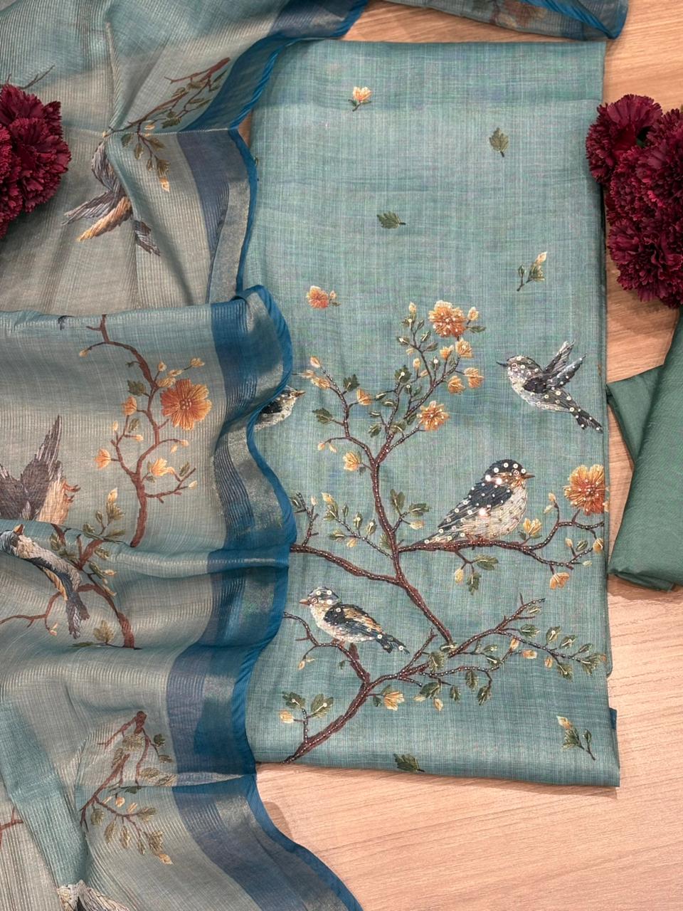 Exquisite unstitched suit is crafted in soft and breathable linen cotton