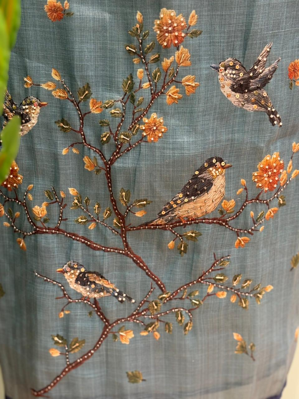 This exquisite unstitched suit is crafted in soft and breathable linen cotton fabric, offering comfort with refined elegance. The shirt is adorned with beautiful figure-inspired artwork, delicately placed to create a graceful and artistic appeal. Subtle highlighted detailing enhances the design, adding depth and sophistication without overpowering the look. The coordinated dupatta carries complementing artwork, completing the ensemble with effortless charm. Paired with a comfortable santoon bottom, it ensures structure and ease for all-day wear. Perfect for intimate gatherings, office styling, or daytime occasions, this suit blends art with fashion. Available in three stunning shades – Mauve Berry, Sage Mint, and Ink Blue.