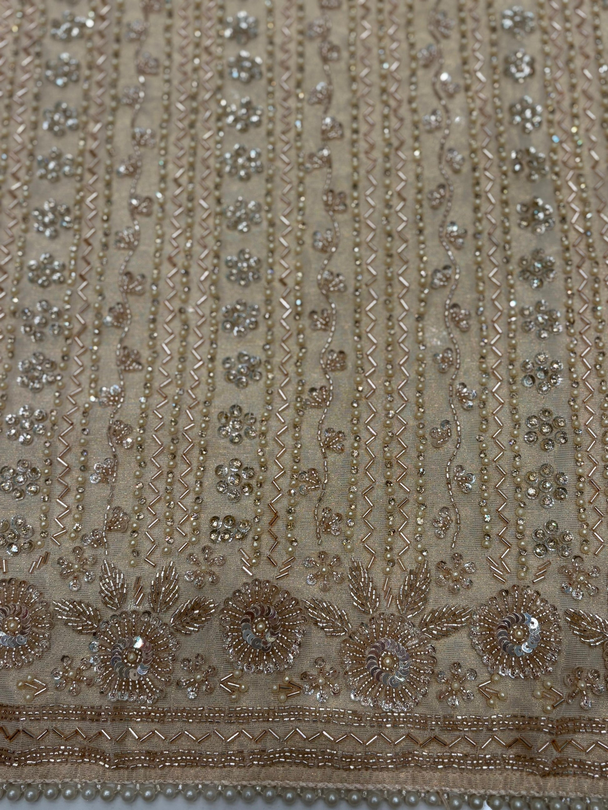 🌸 Grace meets grandeur with our unstitched suit in Organza shimmer fabric. The kurta is beautifully handcrafted with pearls, katdana, antique stones, and fine zardozi work, making it a true piece of artistry. Paired with a smooth Upada silk bottom, the outfit balances luxury with comfort. The highlight is the Organza shimmer dupatta, finished with delicate katdana embellishments that add an elegant sparkle. Ideal for weddings, festive occasions, or special evenings, this ensemble allows you to design your style while embracing timeless tradition. A statement of sophistication, this masterpiece ensures you shine with elegance at every celebration. ✨👑🌺