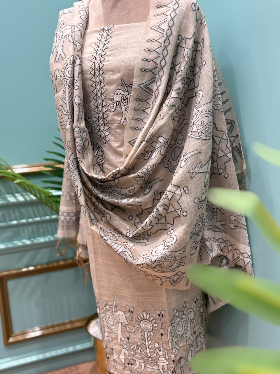 Graceful unstitched cotton suit reflects timeless elegance