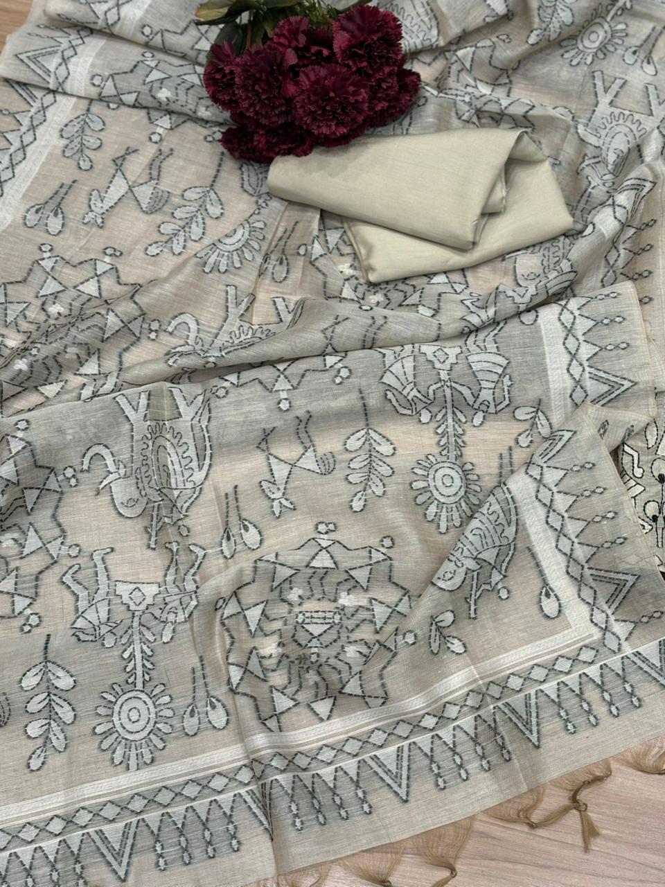 This graceful unstitched cotton suit reflects timeless elegance with intricate thread work beautifully highlighted on the shirt. The fine detailing enhances its artisanal charm while maintaining a soft, breathable feel for all-day comfort. The weaving dupatta adds depth and sophistication, creating a perfectly balanced traditional look. Paired with a santoon cotton bottom, this ensemble ensures ease, structure, and effortless styling. Ideal for everyday elegance, office wear, or refined casual gatherings, this suit allows you to tailor it your way. A perfect combination of comfort, heritage craftsmanship, and understated luxury for a confident and graceful wardrobe statement.