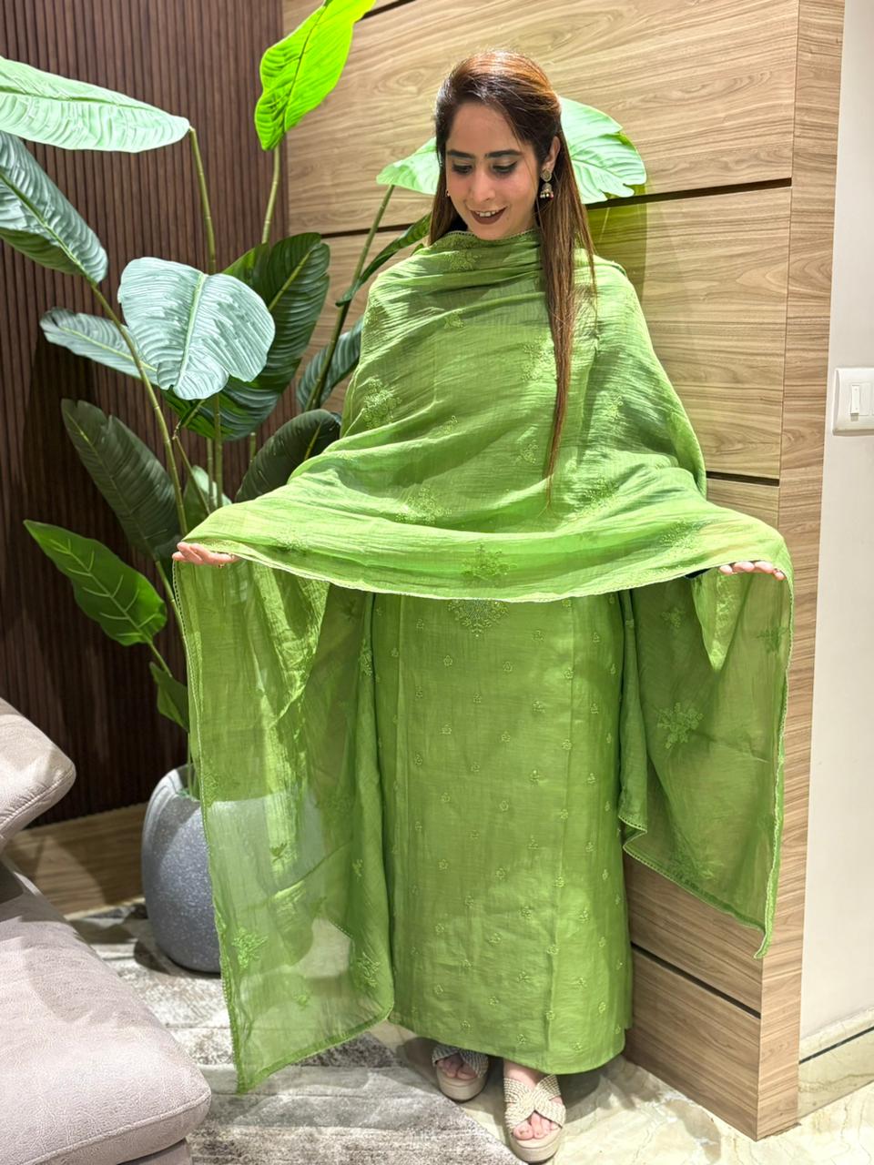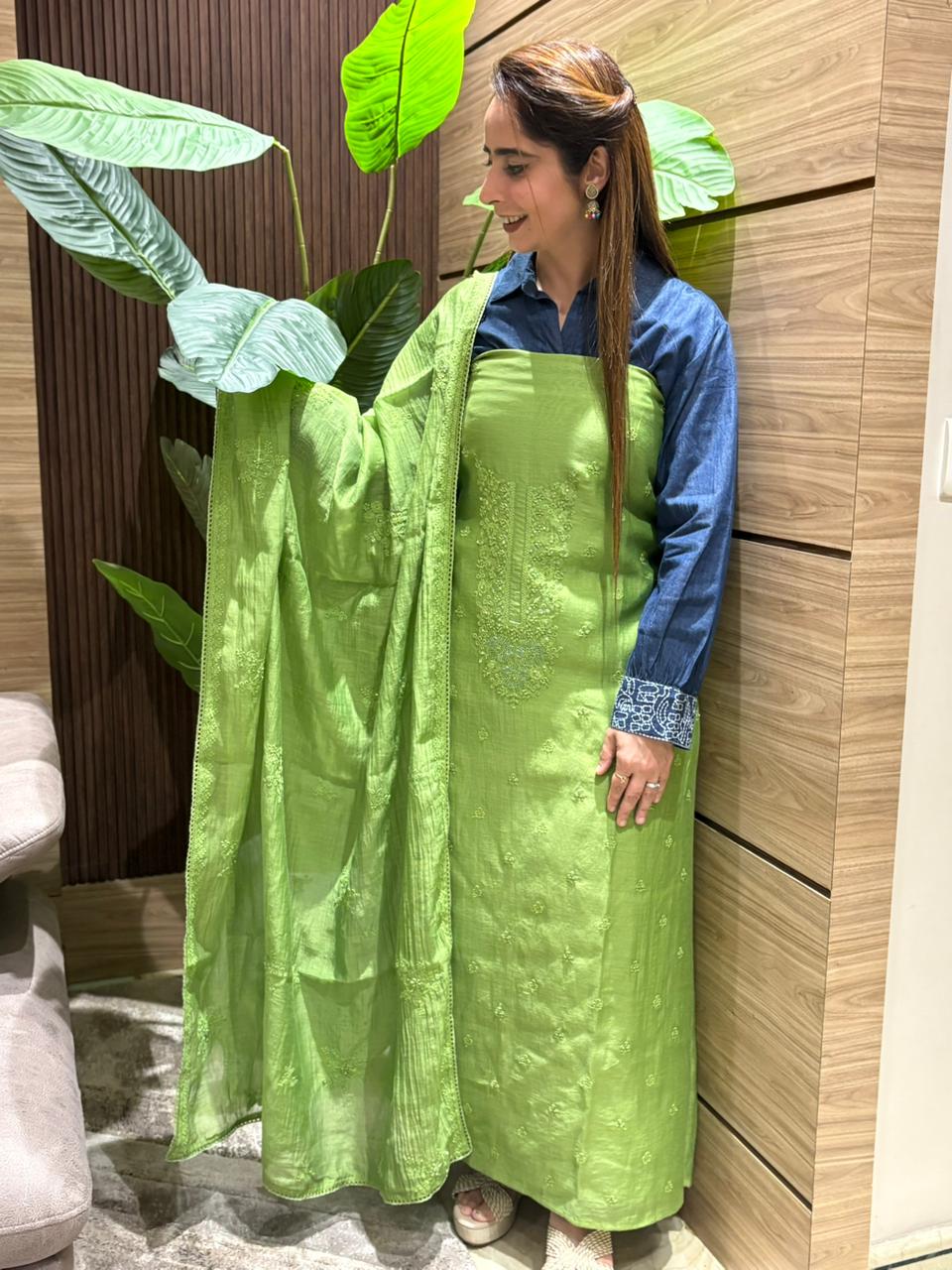 Soft, breezy and effortlessly elegant — this mul cotton unstitched suit is your everyday luxury. Designed with delicate detailing on the shirt and paired with a light, flowy mul cotton dupatta, it brings comfort with graceful charm. The santoon cotton bottom adds a perfect structured finish, making it ideal for all-day wear. Whether it’s casual outings, small gatherings or day functions, this piece blends simplicity with style beautifully. Available in three refreshing shades — Fuchsia Pink for bold vibes, Leaf Green for calm elegance, and Sunshine Yellow for a bright, happy look. Pick your favorite and style it your way.