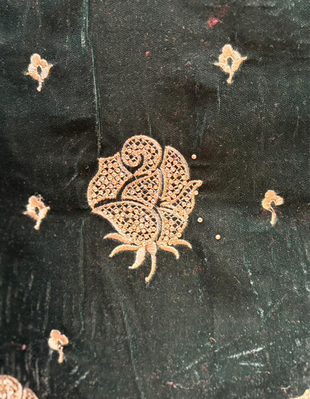 Presenting our luxurious velvet unstitched suit collection, crafted specially for winter weddings and festive elegance. The suit features rich velvet fabric adorned with delicate Swarovski work that adds a soft, royal sparkle to every move. The neckline and motifs are finely detailed, giving a graceful and timeless appeal. It comes with a heavy velvet dupatta highlighted with an intricate cut-work border for that perfect statement look. The bottom is also crafted in premium velvet, ensuring complete richness from top to bottom. Available in four stunning shades — maroon, wine, bottle green and teal blue — this collection defines pure royal charm.