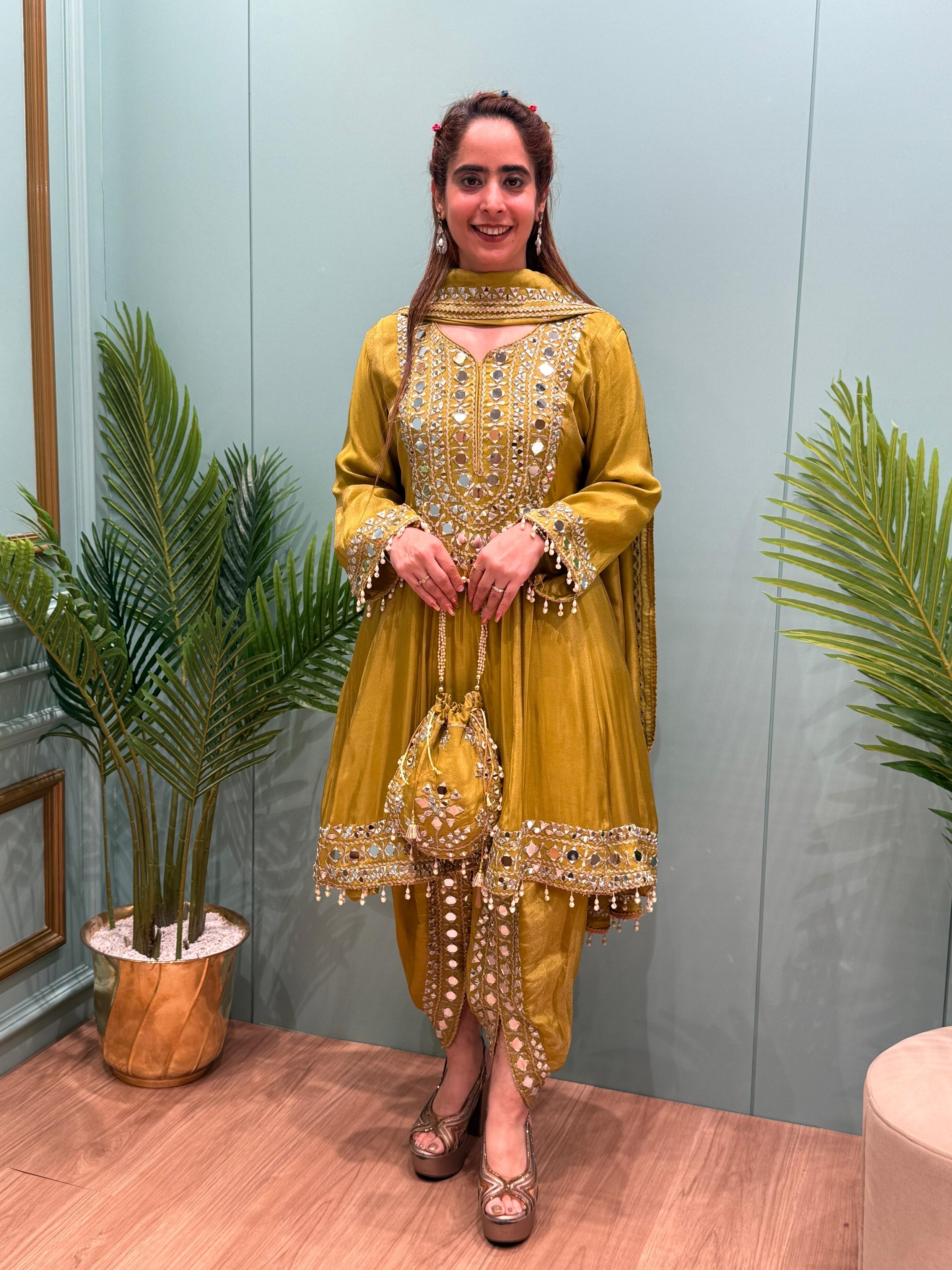 get ready to slay every celebration with our latest Short Anarkali with Dhoti Set, perfectly styled with a matching designer pouch bag ✨ Heavy mirror work, comfortable dhoti fit, and that glam dupatta — it’s a full festive package! Choose your favourite shade from 4 stunning colours: Lavender Purple, Rust Orange, Gajri Pink, and Shimmery Olive. Weddings, sagai, mehndi, kitty party, or festive functions — this outfit makes you shine like a star ⭐ Don’t wait beauties, grab your trending look now and turn every head around! 💖🛍️