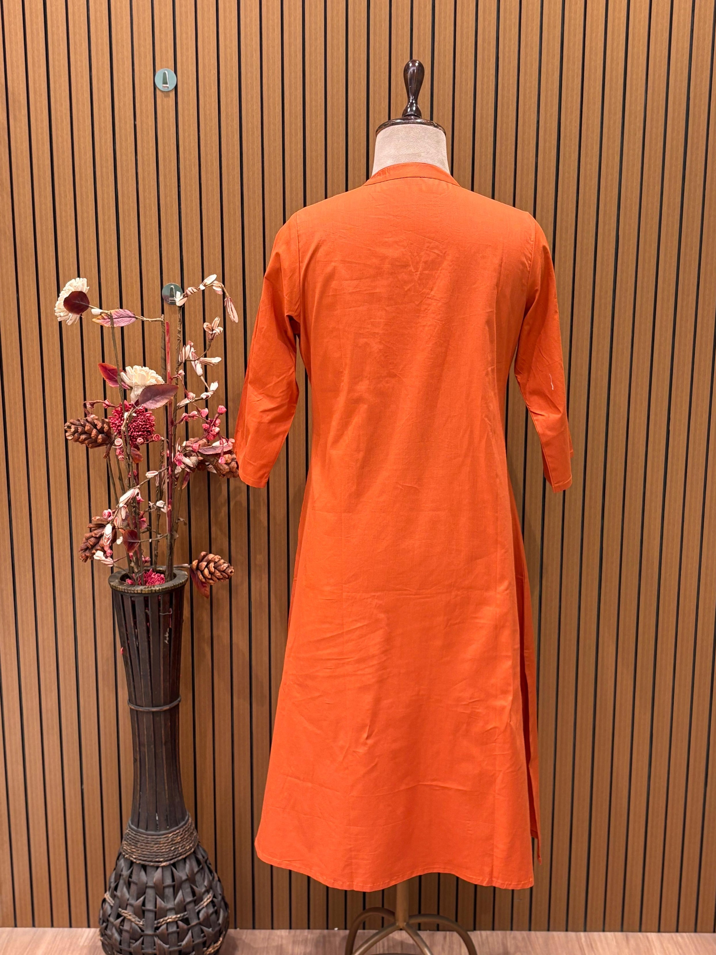 Bright cotton kurti set in festive orange