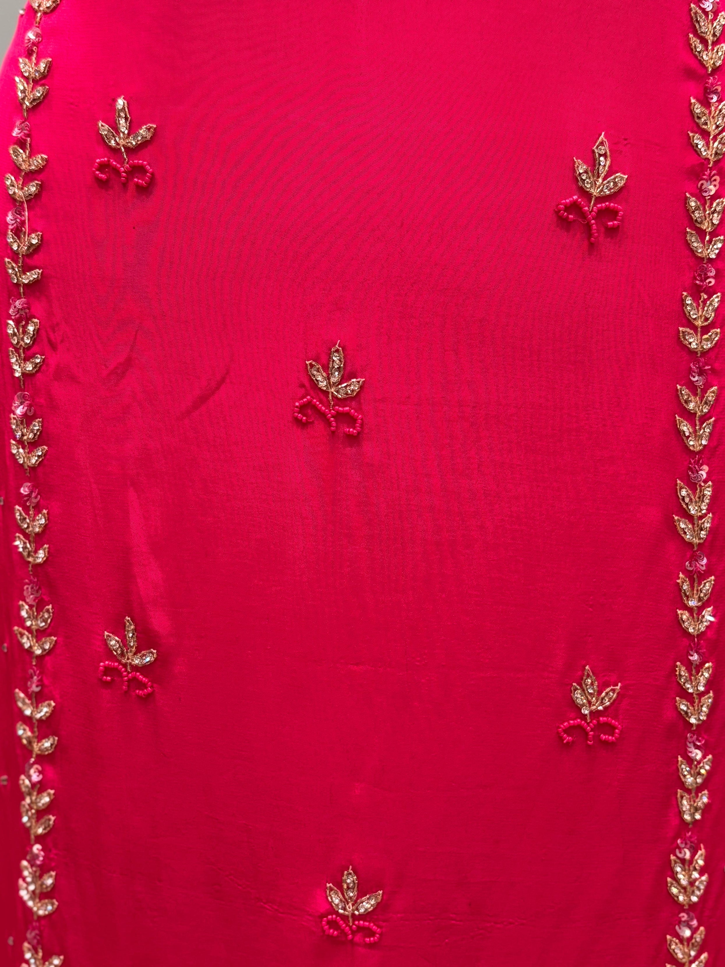 Unveil timeless elegance with our premium unstitched suit crafted in rich crape silk fabric. The kameez is beautifully adorned with delicate sequence, pearl, and zarkan work, adding a touch of festive sparkle and refined luxury. Paired with a matching crape silk bottom, it ensures comfort with class, perfect for festive occasions and celebrations. Completing the set is a soft, flowy chiffon dupatta, offering effortless grace and charm. Whether for Karwa Chauth, weddings, or special gatherings, this unstitched ensemble allows you to customize the fit while radiating style, tradition, and sophistication. A perfect choice for your festive wardrobe. ✨🌸